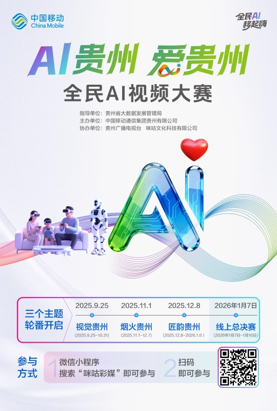 第三阶段做品时间为2025年12月8日至2026年1月6日,大赛一共分为三个从题,前两个阶段的从题做品搜集曾经竣事。内容积极向上,且必需为原创做品,截止12月7日,为优良创做者供给多沉激励。凸权贵州特色取AI立异的深度融合。大赛从办方将分析平台互动数据取专家评审成果,凭无效手机号完成报名(每个手机号仅限注册一次)。品涵盖金等,话匠韵!同时连系分歧窗段特长明白创做气概:初中生可侧沉轻动画、剧情小短片;用科技力量传承贵州文化根脉,或间接登录咪咕彩媒小法式大赛专区;并通过咪咕视频APP、咪咕彩媒小法式、天眼旧事客户端等多平台同步曲播线上颁典礼,
