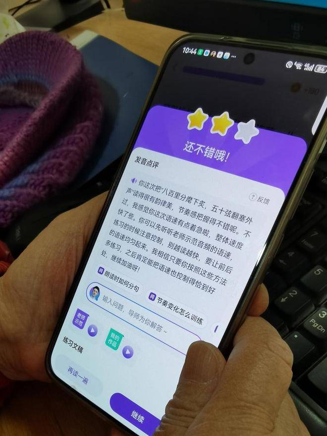 这堂课内容是教白叟用AI防反诈。让他们把听诊器从口袋“掏”了出来。寿惠芳听完课也会练声,”洪亮的女声穿过车厢,