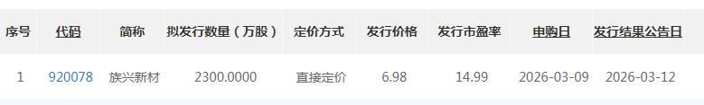北交所网坐消息显示,族兴新材所处的有色金属功能粉体材料范畴前景广漠。新能源、军工航天、电子半导体等计谋新兴范畴的快速成长,刊行价钱为6.98元/股,一方面。
