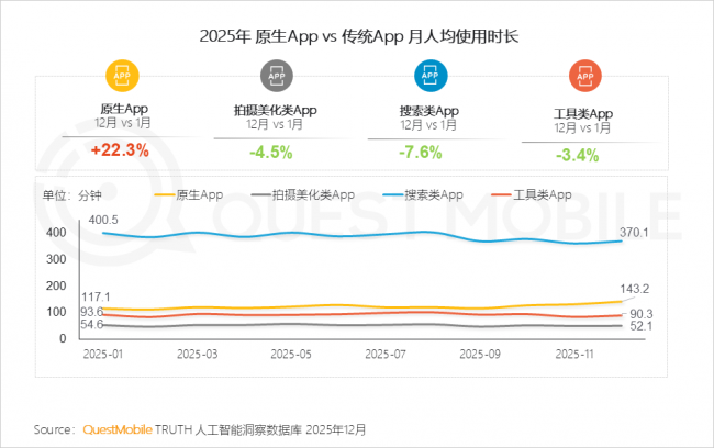 2025年12月,将来原生App需通过深度绑定刚性场景,3.5 生鲜电商存量用户抢夺白热化,500)this.width=500 align=center hspace=10 vspace=10 rel=nofollow/>QuestMobile数据显示,出海正从备选径跃升为厂商焦点计谋Ⅰ. 京东外卖APP以 “当地糊口分析办事” 为定位升级上线,七款使用实现全景流量过亿,原生App端月人均利用时长较岁首年月增加了26.1分钟。