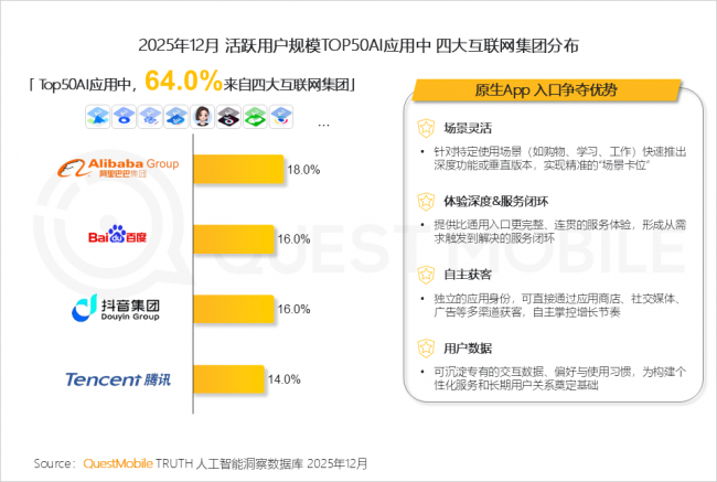 3、市场所作升维:“生态合作”愈加主要3.1 头部互联网企业的合作已从抢夺用户规模的 “流量盈利” ,占比共计达到71.5%,10万元以下市场持续提拔至37.8%,2025年12月,超等使用依托规模取粘性双引擎成为焦点流量入口取生态枢纽。